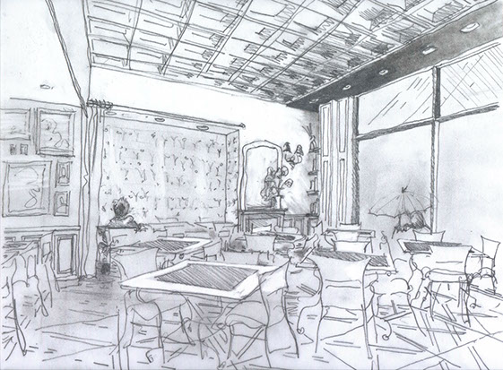 This Bakery Café takes advantage of the existing architectural quality of the space – tall ceiling, wide windows, Northern orientation, split levels – to create a comfortable atmosphere. The warmth of materials – oak floor, sandstone – and colors – off-white and red, convey a sense of sophistication