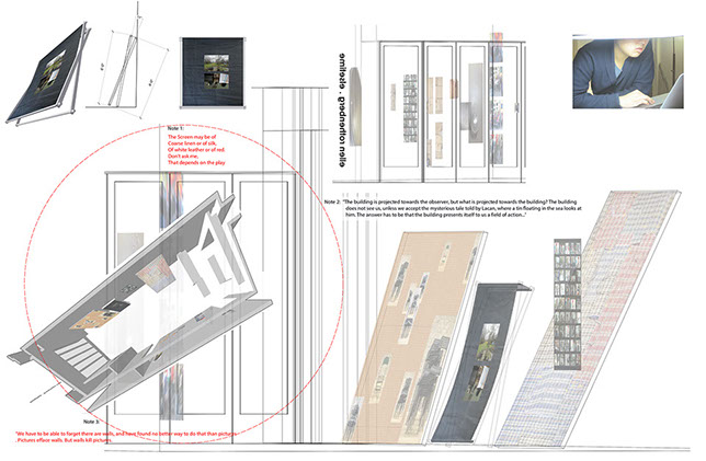 Collaborating with Ellen Rothenberg on her solo show at Sector 237 Gallery included the design of several “lean-to” structures. This was the occasion to think about architecture as support for the art pieces, as well as art itself. Similarly, the blue prints and models that helped lay-out the space, became integral part of the artist’s creative process.