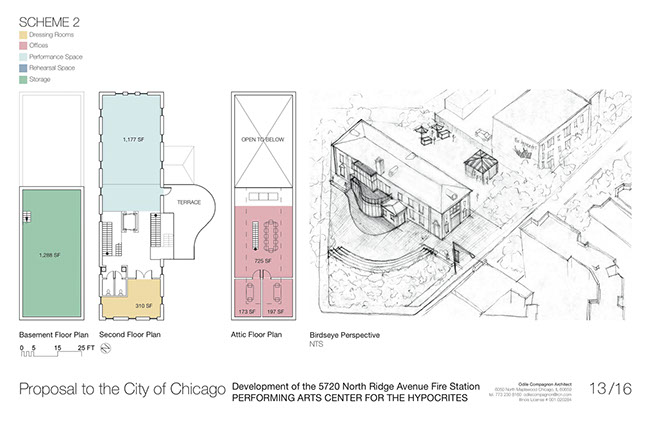 In response to the City of Chicago’s 2013 Request for Proposal to develop the unoccupied Ridge Avenue Fire Station in the Edgewater neighborhood we proposed the Creation of a performing arts center for the Hypocrites, allowing the Chicago theater company to highlight the historic landmark and create events with and around the community, while making stronger its current cultural bond with the city of Chicago.